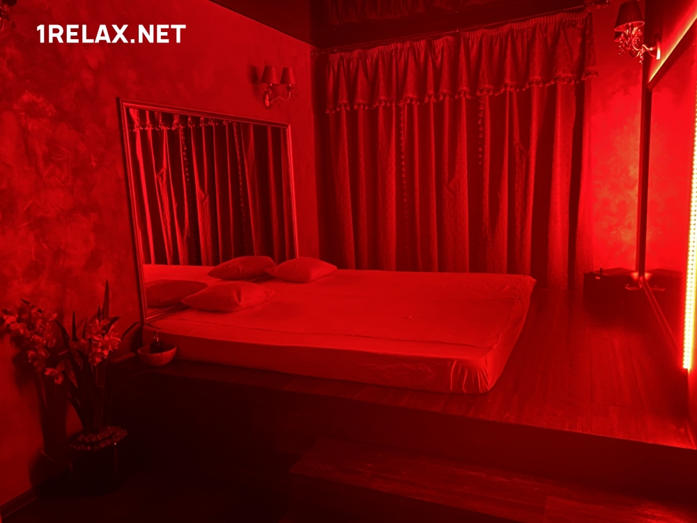 Три комнаты оформлены в стиле минимализма. Ничто не отвлекает внимание от царящего здесь волшебства. Отдых начинается в уютной гостиной, где есть мягкий диван, телевизор, отличный бар. В общении с прелестными мастерицами гость выбирает девушку и программу.