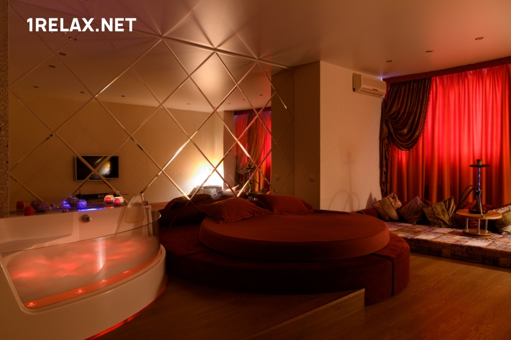 В массажном салоне четыре комнаты. В них вы найдете джакузи для аква-процедур, комфортную большую кровать, диван, телевизор. Приятная температура поддерживается кондиционером.